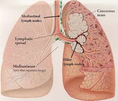 The WINDPIPE (trachea) is the passage leading from the throat to the lungs. The windpipe divides into the two main BRONCHIAL TUBES, one for each lung, which subdivide into each lobe of the lungs. These, in turn, subdivide further. The right lung is divided into three LOBES, or sections. Each lobe is like a balloon filled with sponge-like tissue. Air moves in and out through one opening -- a branch of the bronchial tube. The left lung is divided into two LOBES. The PLEURA are the two membranes, actually one continuous one folded on itself, that surround each lobe of the lungs and separate the lungs from the chest wall. The bronchial tubes are lined with CILIA (like very small hairs) that have a wave-like motion. This motion carries MUCUS (sticky phlegm or liquid) upward and out into the throat, where it is either coughed up or swallowed. The mucus catches and holds much of the dust, germs, and other unwanted matter that has invaded the lungs. is the strong wall of muscle that separates the chest cavity from the abdominal cavity. By moving downward, it creates suction in the chest to draw in air and expand the lungs. The RIBS are bones supporting and protecting the chest cavity. They move to a limited degree, helping the lungs to expand and contract.